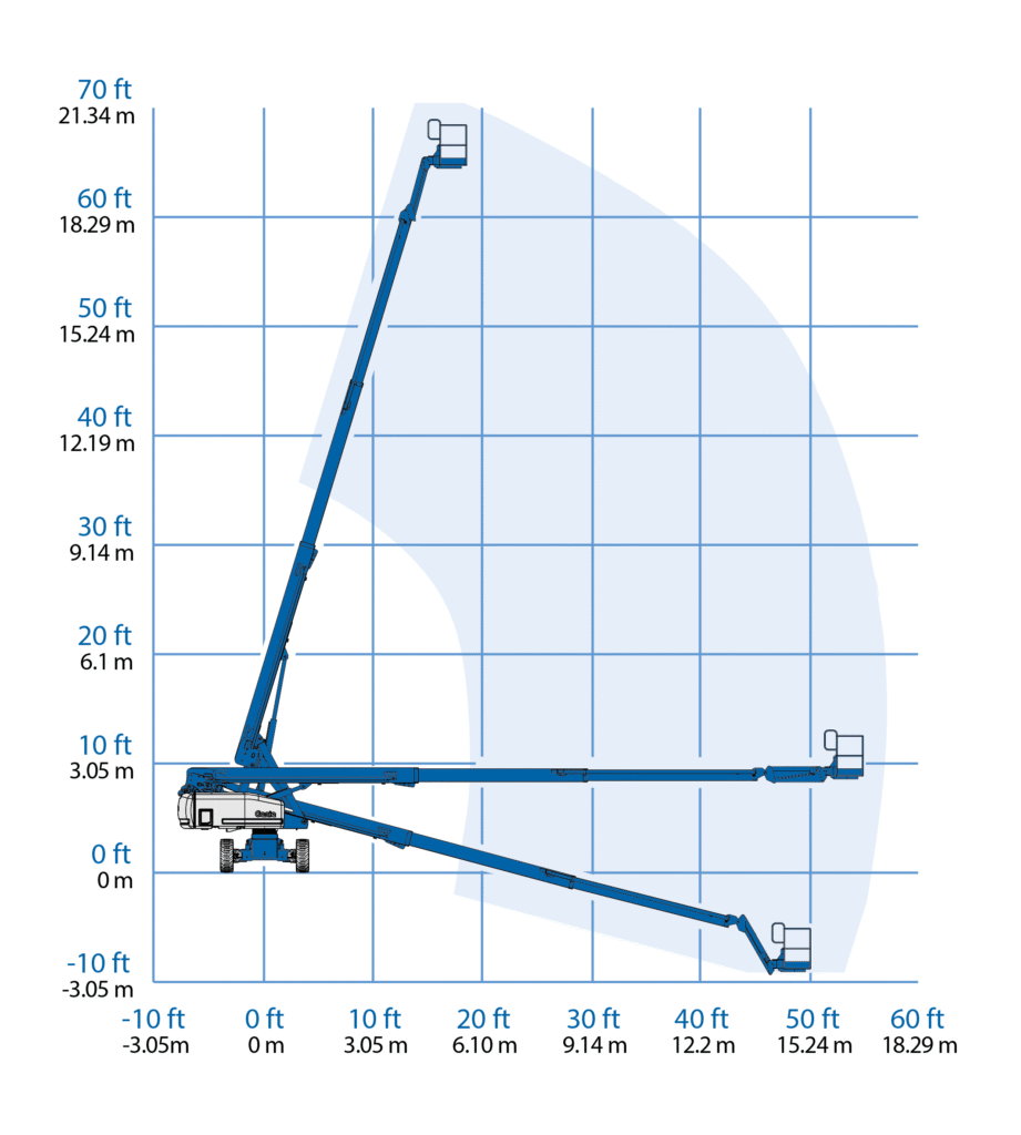 - Izjemen horizontalni doseg: Z delovno višino 21,80 m in izjemnim horizontalnim dosegom 17,10 m je Genie S-65 idealna izbira za delo čez ovire. S 360-stopinjskim neprekinjenim vrtenjem imate popoln nadzor nad celotnim delovnim območjem, kar povečuje vašo učinkovitost.