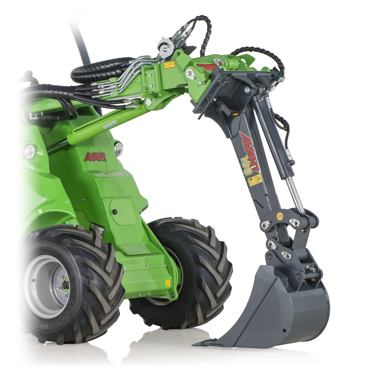 Mini kopač 150 AVANT  je učinkovita rešitev za manjša izkopavanja, kjer zadostuje maksimalna globina kopanja 1500 mm in izkopavanje ni vsakodnevno opravilo.