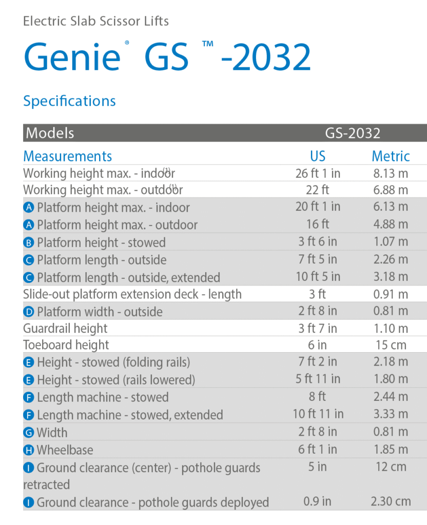 Škarjasta dvižna ploščad Genie GS-2032 je popolna rešitev za notranja dela, kjer je ključna velika nosilnost in kompaktna velikost. Z delovno višino 8,13 m in impresivno nosilnostjo 363 kg omogoča varno dvigovanje težjega materiala in orodja.